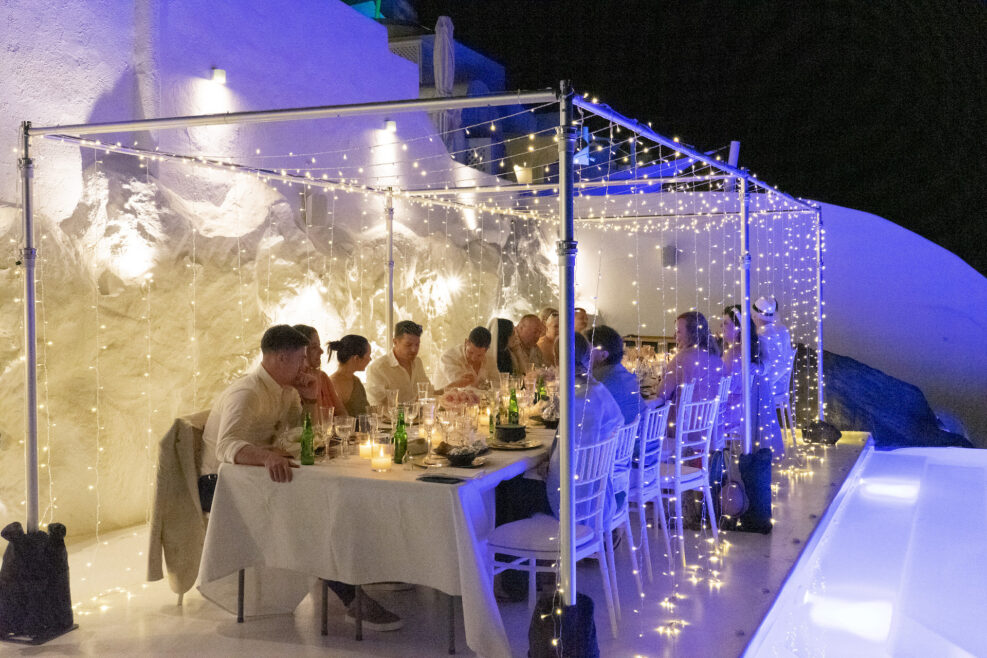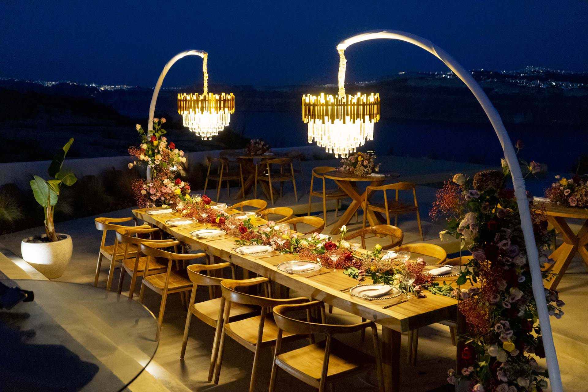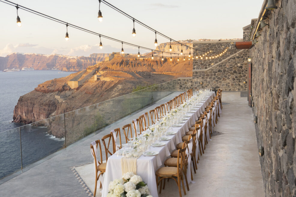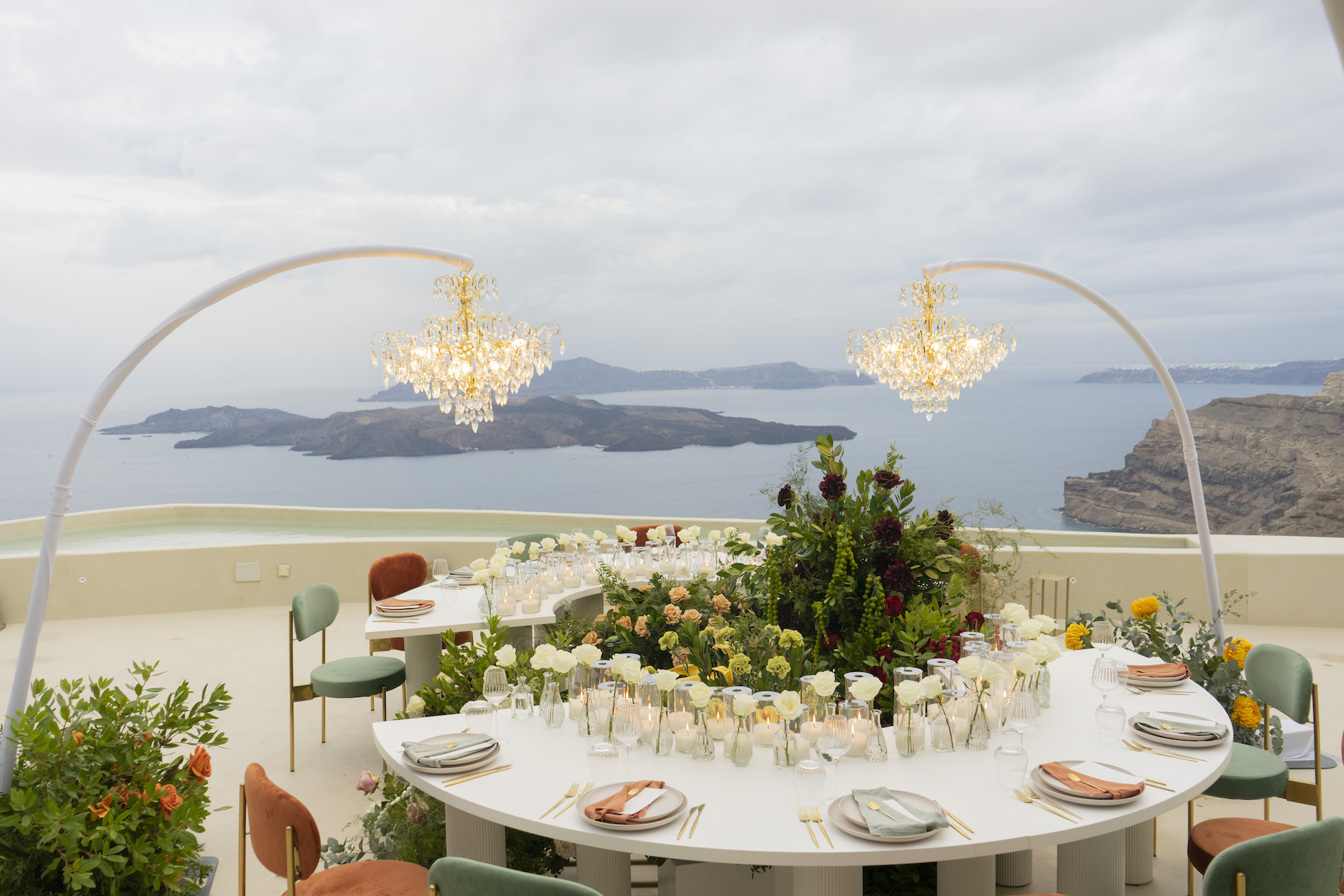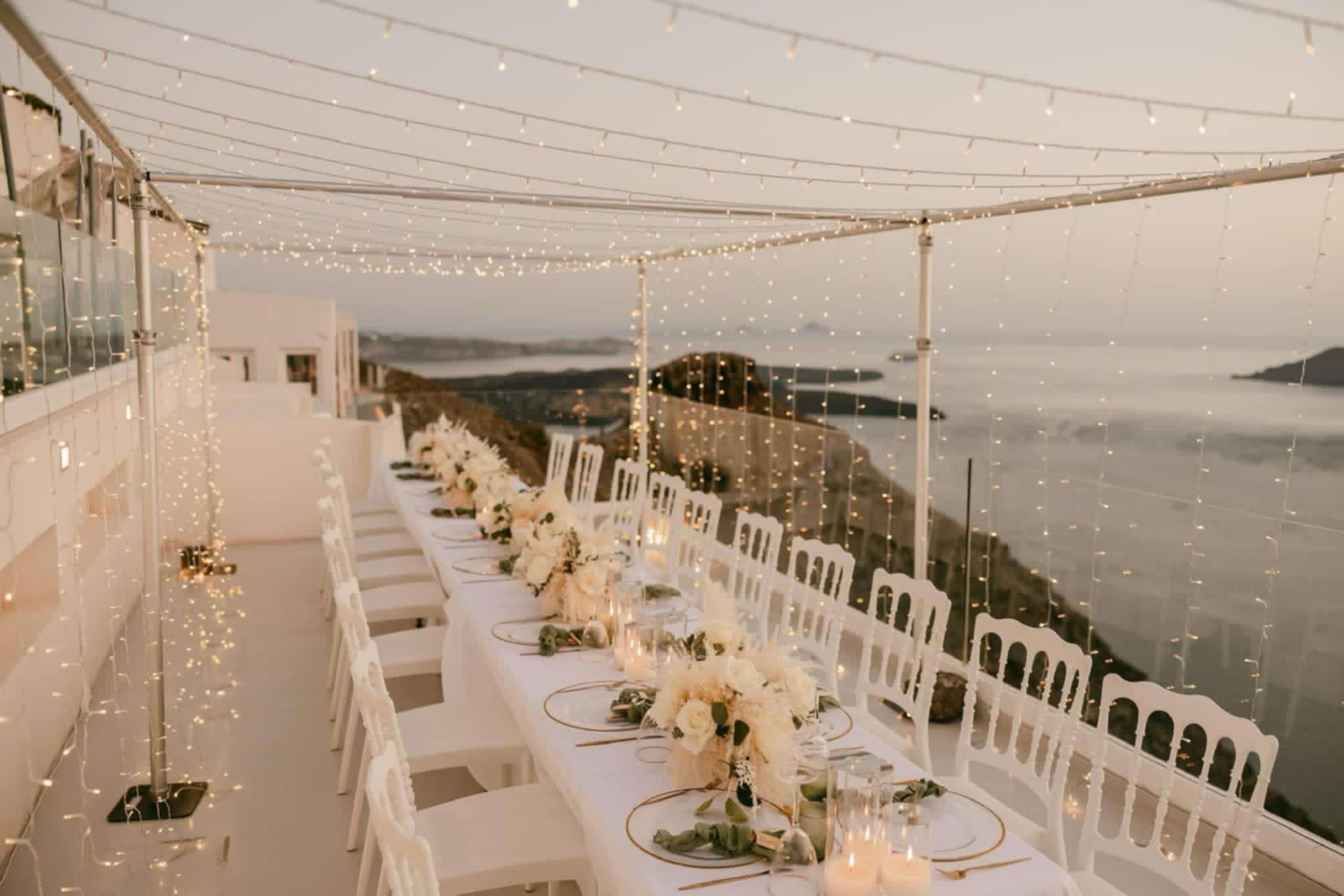 Transform your Santorini wedding into a fairytale with elegant chandeliers. Their warm, romantic glow highlights the beauty of your venue, creates unforgettable ambiance and adds a touch of luxury that perfectly complements the island’s breathtaking sunsets.